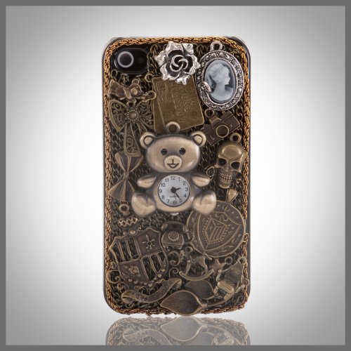 Antique Metal Teddy Bear Watch Flower "Elite Collection" Luxury glass diamond case cover for Apple iPhone 4 4G (not 4S) Overview